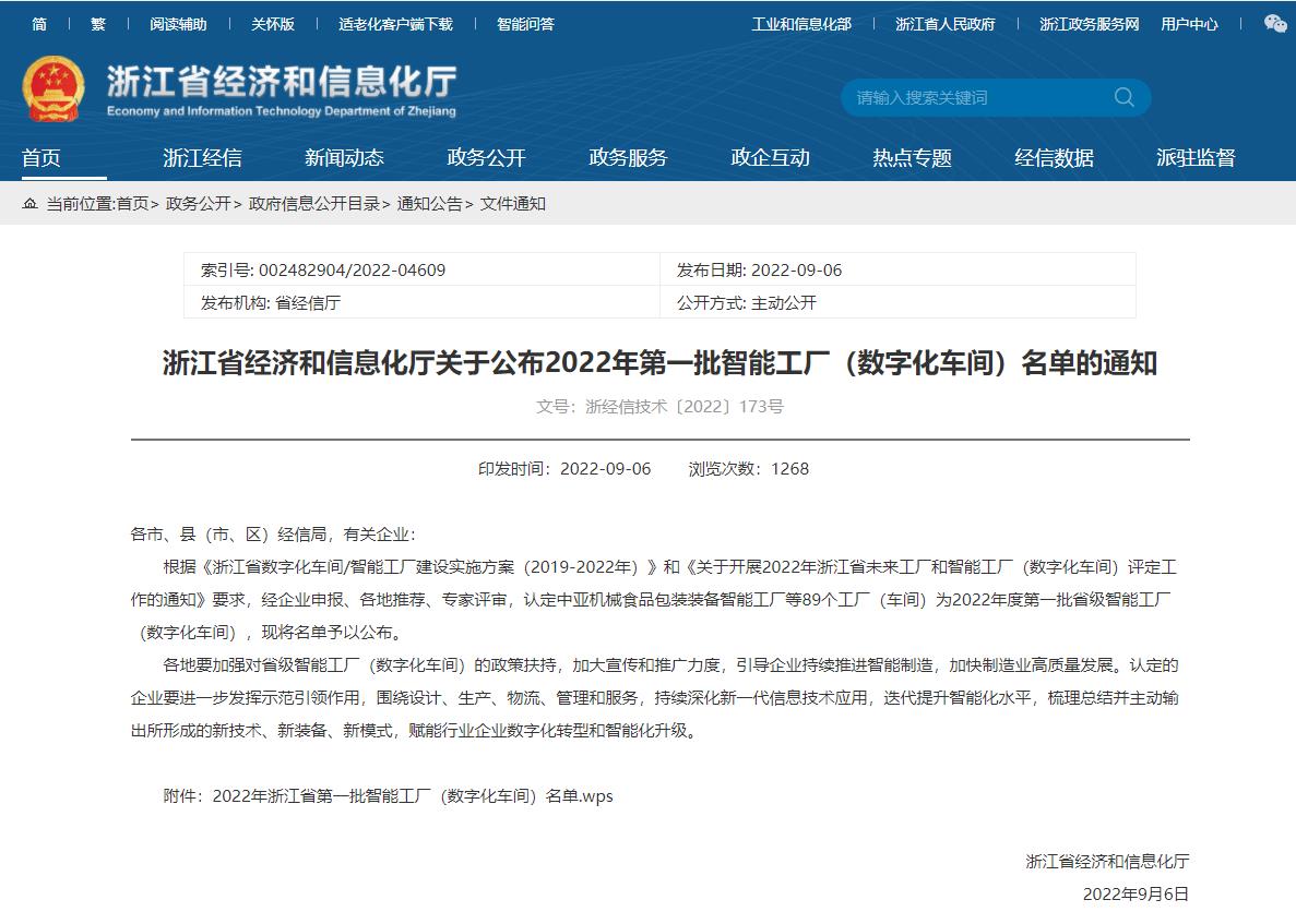 喜报 | 米兰官方网页版股份荣获2022年度第一批省级智能工厂