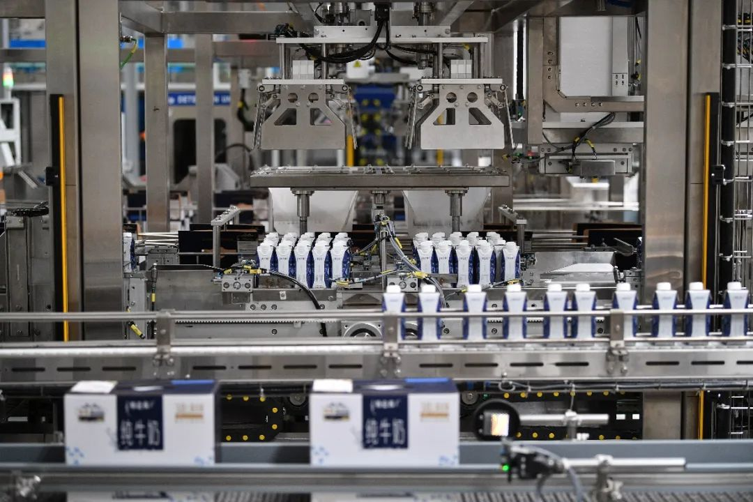 整厂总体规划24条全球最先进的生产线,米兰官方网页版负责每条生产线在灌装之后的所有生产工序,直至产品自动进入立体仓库,采用了产品智能柔性伺服包装技术、磁悬浮分轨控制技术、天车系统无人化辅料输送技术、辅料无人上下料技术、废料AGV自动收集与运输技术、多系统运算调度技术等多项黑科技,最大限度的保障生产线无人数智化运行,实现效率的指数级提升,让“看不见的技术”与“看得见的产业链”结合,为全球乳业智能制造发展贡献智慧。