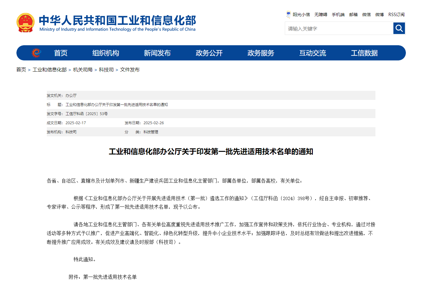 喜报 | 米兰官方网页版干法无菌技术入选工信部第一批先进适用技术名单