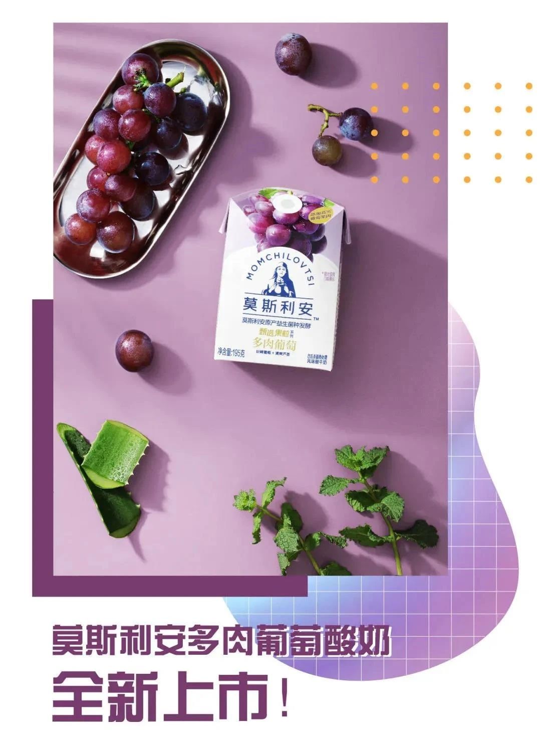 光明莫斯利安甄选果粒家族又添一位新成员,莫斯利安多肉葡萄酸奶;