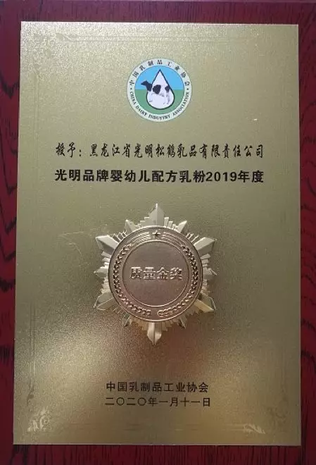 光明乳业荣获“2019 年度中国乳业社会责任典范企业”称号,光明乳业旗下“光明优幼”、“光明牧场”、“光明致优”三个系列婴幼儿配方奶粉荣获“2019 年度主流品牌婴幼儿配方乳粉质量金奖”;
