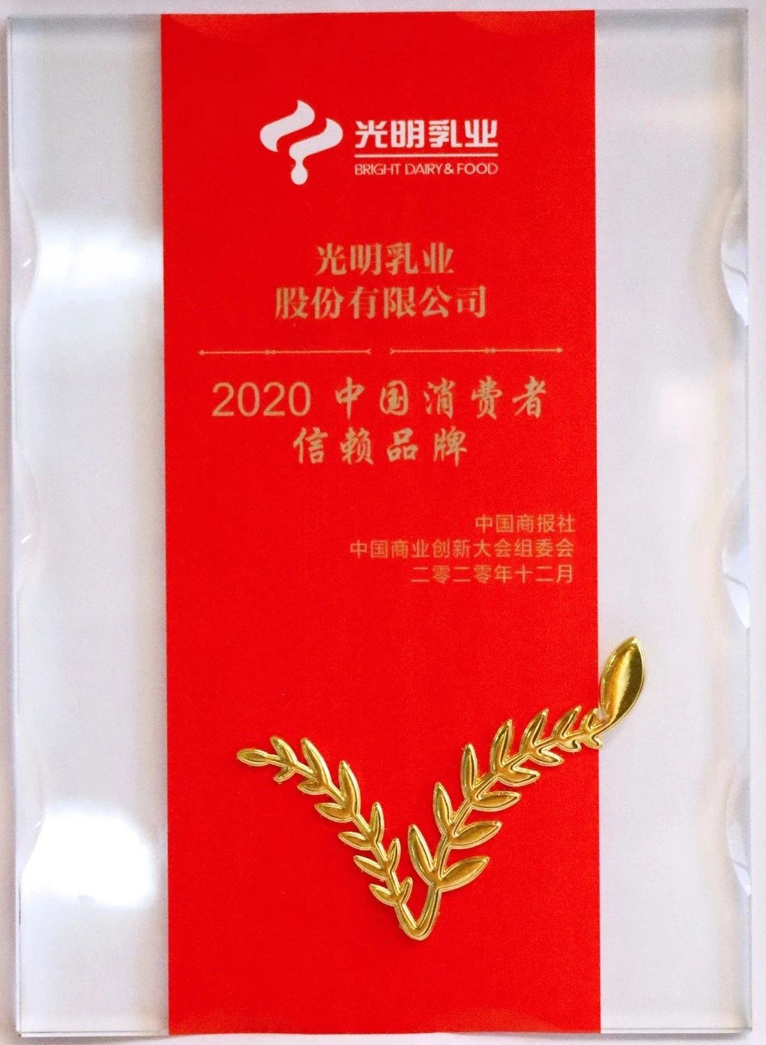 光明乳业荣获“2020中国消费者信赖品牌”;