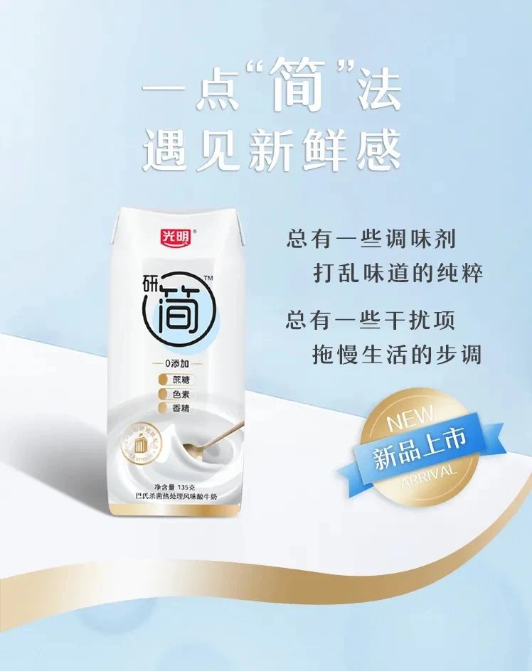 光明乳业研究院配方—无添加常温酸奶光明研简酸奶上新;
